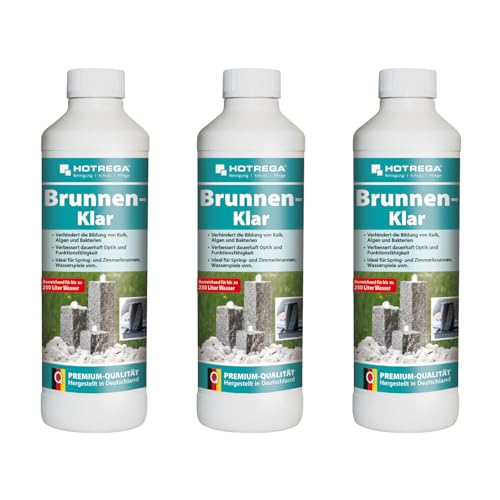 HOTREGA Brunnen-Klar 3x 500 ml | Brunnenreiniger gegen Kalk Algen und Bakterien | Für Innen- und Außenbereich | Geeignet für Zier- und Gartenanlagen