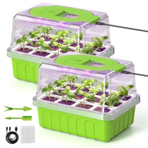 RAINPOINT Anzuchtkasten mit Pflanzenlampe, Wiederverwendbare Mini Zimmergewächshaus, Vollem Lichtspektrum, Flexible Silikon Anzuchtschalen, 2 X 12 Zellen Anzuchtset mit Deckel und Belüftung, 2 Stück