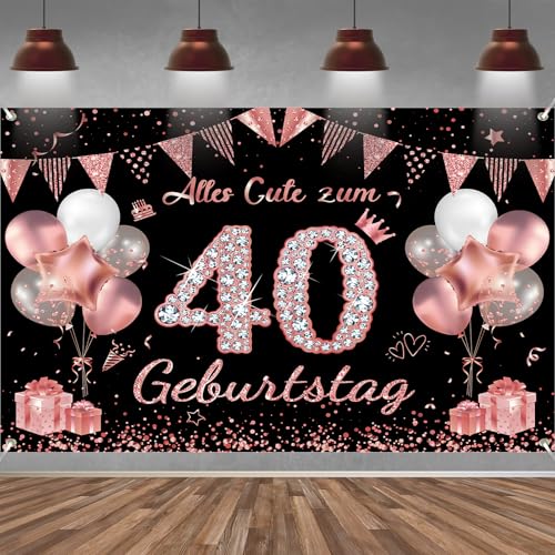 40. Geburtstag Banner Frauen Deko Roségold Schwarz 40 Geburtstag Hintergrund Banner, Extra Große Stoff Schild Poster für 40. Geburtstagsparty Deko, 210x150 cm