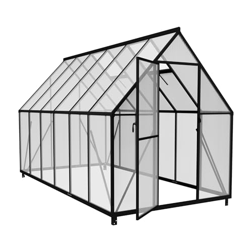 PEILU Gewächshaus Aluminium Treibhaus mit Transparent PC Platten Dachfenster & Tür & Fundament 340x180x195cm Winterfest Gartengewächshäuser Begehbares Pflanzenhaus für Garten Outdoor