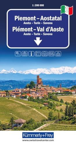 Kümmerly+Frey Regional-Strassenkarte 1 Piemont, Aostatal 1:200.000: Mit Aosta, Turin und Savona. Inkl. Stadtpläne, Ortsverzeichnis und Reiseinformationen