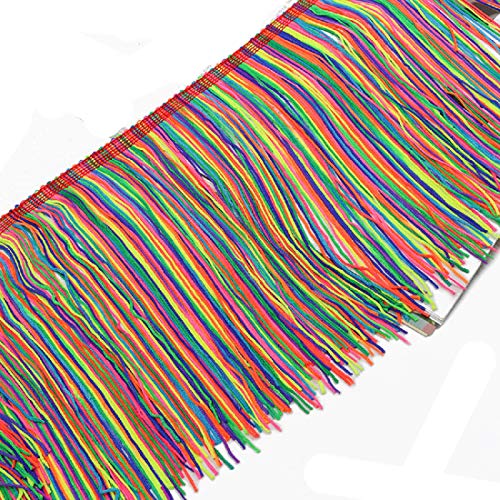 Yalulu 2 Meter x 20cm Quaste Seidig Fransen Tanzfransen Geschnitten Fransenborte Fransenband Kostüm Quaste trimmen Garment Apparel Spitzenborte Nähzubehör (Regenbogen)