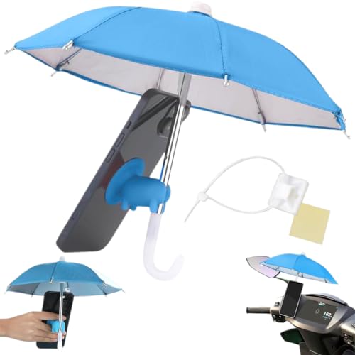 QWEPU mini regenschirm für handy, Halterung mit Saugnapf für Sonnenschirm, für Sonnenschirm Outdoor Telefon Sonnenblocker Handy-Schirm Abdeckung Auto Navigation Sonnenblende (blau)