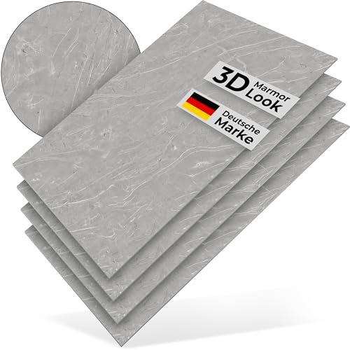 WANEELL 3D PVC Wandpaneele Marmoroptik – 4 Stück 120×60 cm – wasserfeste Wandverkleidung für Bad, Küche, Wohnbereich, Büro & Hobbyraum – einfache Montage ohne Bohren- Fogstone
