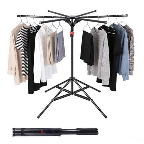 LOMUG Standtrockner Wäscheständer Hoch Klappbar mit 6 Flügeln, Wäschespinne Wäschetrockner Ständer, Faltbarer Wäscheständer mit Sockenhalter, Kleiderständer Trockenständer für Drinnen Draußen Balkon