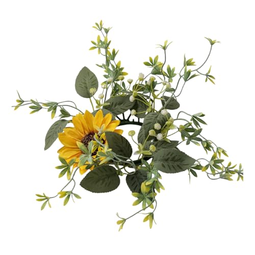 Candle Rings Wreaths - 9Inch Artificial Floral Ring for Spring | Sunflower Faux Decoration with Kitchen Cabinet Display, Home Table Centerpiece, Seasonal Decorative Tool for Events