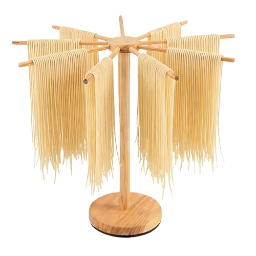 Nudeltrockner Nudelständer aus Holz, Faltbarer Pastatrockner mit 9 abnehmbaren Armen und Drehbarem Sockel, Stabiler Nudelständer zum Aufhängen handgemachter Pasta & Nudeln, bis 4,5 kg belastbar