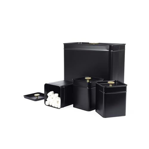 Salter Alchemy 4-teiliges Arbeitsplattenset - Brotkasten & 3 Aufbewahrungsbehälter, Tee-, Zucker-, Kaffee-Dosen, Pulverbeschichteter Kohlenstoffstahl, Leicht zu reinigen, Schwarz/Gold