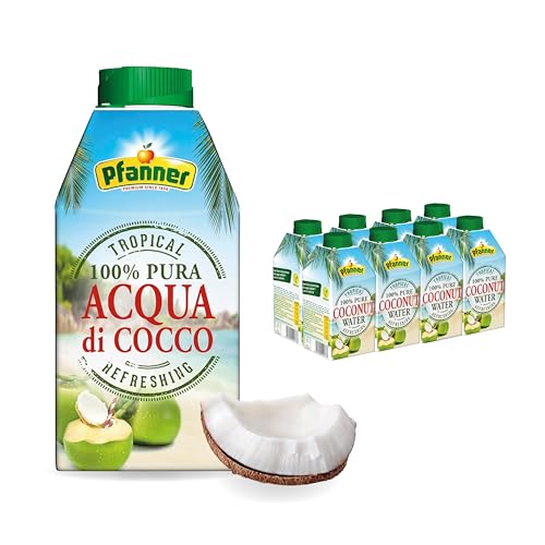 Pfanner Kokoswasser Getränk (8 x 500 ml) – Aqua di Cocco im Vorratspack – Kokosnusswasser ohne Zucker – aus Kokosnüssen