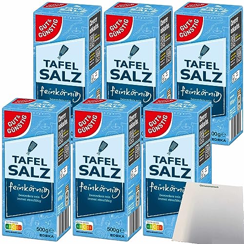 Gut&Günstig Tafelsalz feinkörnig leicht löslich 6er Pack (6x500g Packung) + usy Block