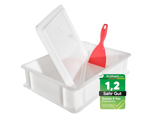 Snacks 4 You - Pizzaballenbox mit Deckel 40x30cm, H 10cm + Pizzaspachtel, Gärbox | Hefekiste | Teigwanne | Teigbox für 6 Pizzateigballen – stapelbar & robust