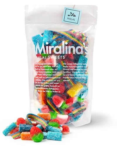 Miralina - Halal Süßigkeiten Mix – Bunte gemischte Tüte 500g - Halal Süßigkeiten Mix – saure Fruchtgummis mit Rindergelatine – Gummibärchen Großpackung