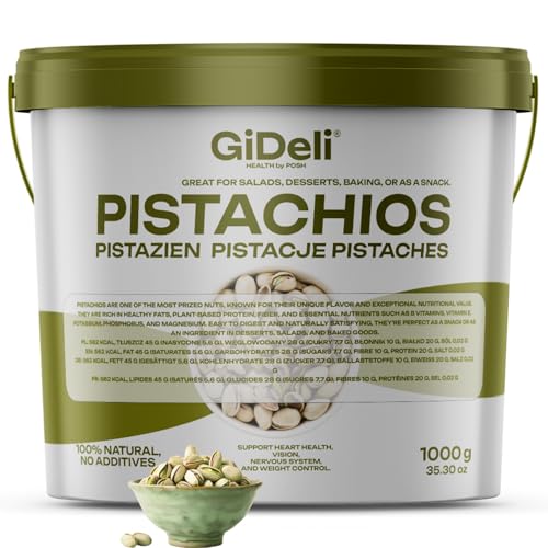 GiDeli Pistazien geröstet und gesalzen 1 kg im Eimer mit Schale herzhafter Snack ideal für Aperitifs und Partys