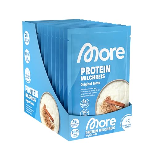 More Protein Milchreis, 13er Tray, 13 x 65 g, 25 g Eiweiß pro Portion, schnelle Zubereitung ohne Kochen, cremig leckerer Milchreis mit weniger Zucker und Fett, perfekt zum Verfeinern
