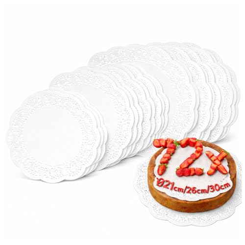 com-four® 72x Tortenunterlagen [ Ø 21 cm | 26 cm | 30 cm ] Tortenspitzen als Unterlage zum Dekorieren und Servieren - weiße Tortenteller aus Papier (72 Stück - 3 Größen)