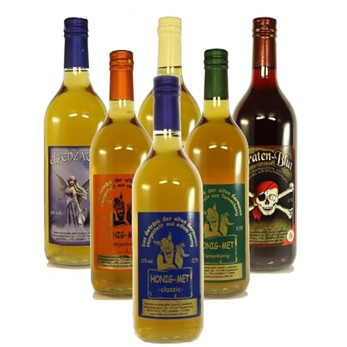 6 Fl. Probierpaket Met/Honigwein Nr. 3: Elfenzauber, Piratenblut, Honigwein Classic, Met Tannenhonig, Orangenhonig, Yukatanhonig