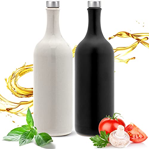 Gourmet Essig & Öl – Flaschen mit Ausgießer, Made in Germany Handgefertigt. Exklusive Steinzeugflaschen, einzigartig, zeitlos und chic. Ausgießer in Deluxe- Silber (2x 750ml. schwarz/ weiß)