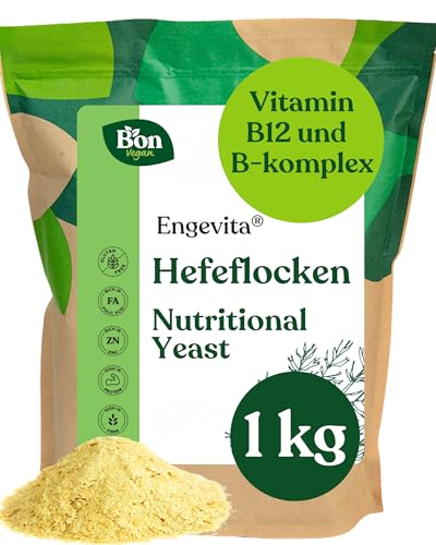 Engevita Hefeflocken 1kg von Bon Vegan | Nutritional Yeast Flakes | Glutenfreie vegane Nährhefe mit Parmesangeschmack, mit Vitamin B12, B-Komplex und Zink