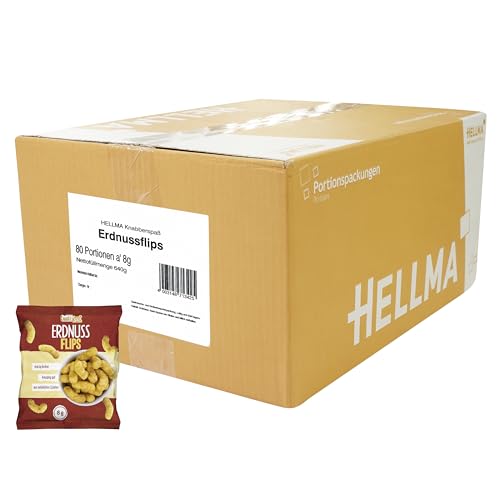 HELLMA Erdnussflips - 80 Stk. Knusprige Knabberei im Mini-Beutel je 8 g - Snack-Vorrats-Box - für Büro oder unterwegs