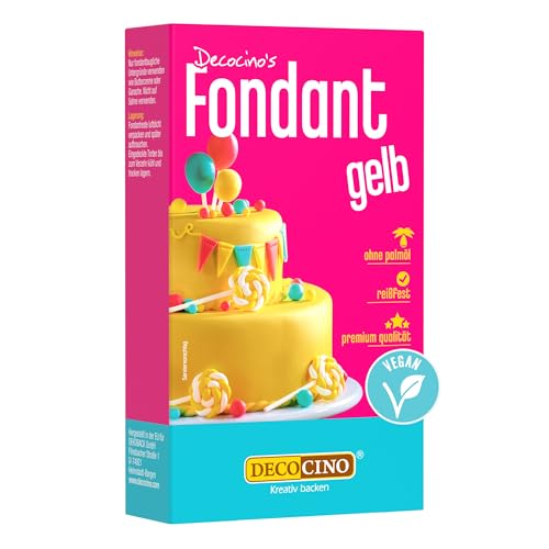 DECOCINO Fondant Gelb – 250 g – ideal zum Verzieren von Kuchen, Torten, Cupcakes – Palmölfrei & vegan