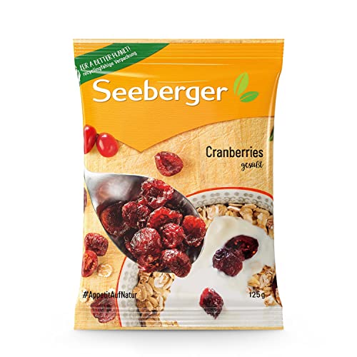 Seeberger Cranberries gesüßt: Halbierte, kanadische Cranberries fruchtig-süß - zum Snacken, als Backzutat und Verfeinern von Gerichten - getrocknet & ungeschwefelt, vegan (1 x 125 g)