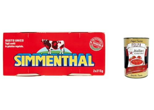 3x SIMMENTHAL carne in scatola, Rindfleisch in Aspik 2x 215g 100% Italienisch Fleisch Aspikfleisch + Italian Gourmet polpa 400g