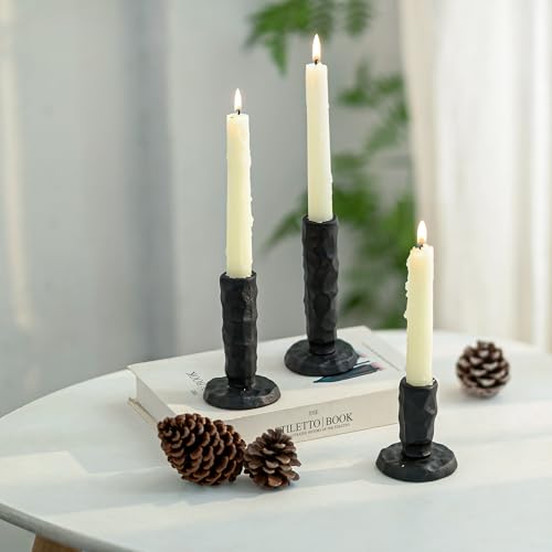 Sziqiqi Eisen Kerzenhalter Stabkerze Schwarz: Gusseisen Kerzenständer Stabkerzen 3er Set für Tischdeko - Gehämmertes Stabkerzenhalter für Wohnzimmer Kamin Esszimmer Couchtisch Badezimmer
