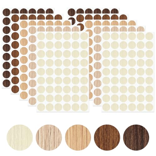 540 Stück Aufkleber für Möbel Holz, Schraubenloch-Abdeckungsaufkleber PVC, Schraubenabdeckung Holz furnier selbstklebend rund für Möbel, Schränke, Regale und Tische (21 mm, 5 Farben)