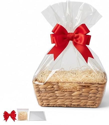 khevga Geschenkkorb Set leer zum Befüllen – inkl. Packpapier, XL Folie & roter Schleife – Präsentkorb für Ostern, Taufe, Geburt, Weihnachten & Geburtstag