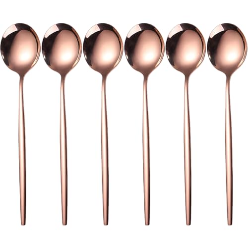Odoukey 6 Stück kleine 5-Zoll-Löffel, Roségold-Besteck-Set, Edelstahl-Besteck, hochglanzpolierte Mokka-Löffel für Tee, Dessert, Kaffee