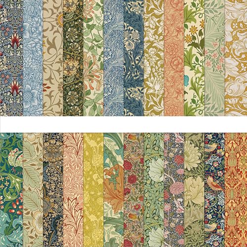 MerwDeeyt Scrapbook Papier Blumen Muster Doppelseitiges Bastelpapier, 30,5x30,5 cm/12x12 in Frühling Motivpapier 24 Blatt Buntes Dekorpapier für Journal Scrapbooking Fotoalbum Dekoration (Grün)