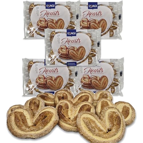 Süße Blätterteig Herzen/Süße Schweinsohren aus Blätterteig 5x 180g feines Teegebäck sowie Kaffeegebäck, Handwerklich Hergestellt (5 Packungen je 180g)