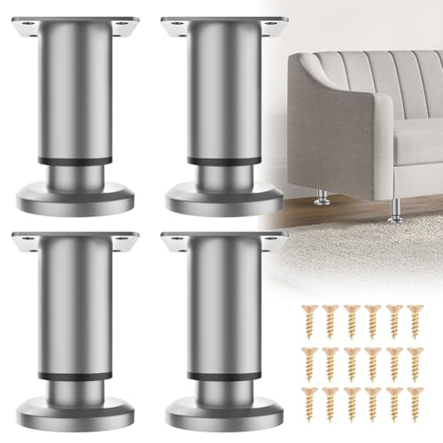 EUBSWA Möbelfüße Verstellbar 8-12 cm, 4 Stück Grau Tischbeine Höhenverstellbar, Metall Höhenverstellbare Füße für Möbelfüße, Schrank Füße, Tischbeine, Kommoden Füsse, Bettfüße