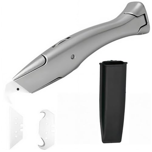 Hakenmesser-Set enthält 5 Trapezklinge, 5 kleine Hakenklinge und eine schwarze Aufbewahrungshülle, Die Klingen sind scharf und langlebig, ideal zum Schneiden von PVC-Bodenbelägen (10 Blades)