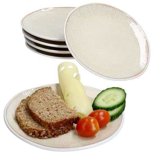 MamboCat TZIA 6er Set Brotteller I Ø 16,5 cm I kleine Teller für Frühstück, Mittag & Abendessen aus Steingut I Vanille & Weiß I Teller für Brot, Beilagen, Gemüse