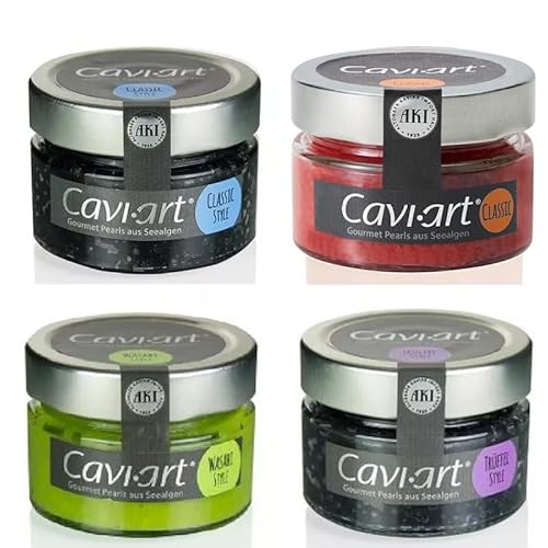 Cavi-Art Algen-Kaviar Probierset - 4 x 100g | veganer Kaviar, Feinkost | Classic, Lachs, Wasabi, Trüffel