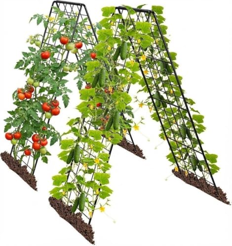 Rankgitter für Tomaten & Gurken, 2 Stück 150cm-Metall Pflanzenständer Rankhilfe Set, A-Form Gitterspalier für Kletterpflanzen, Gemüse & Obst