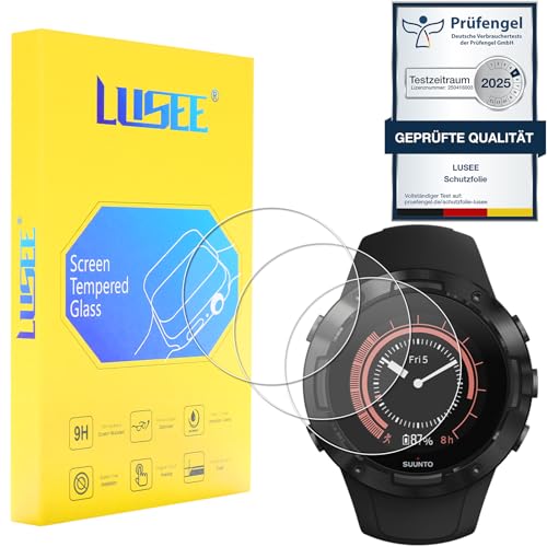 LUSEE 3 Stück Hartglas für Smartwatch (Rund, Durchmesser 37 mm) Universal-Displayschutzfolie [9H Hartglas] [HD klar] [kratzfest] [Anti-Fingerabdruck] 2,5D Displayschutzfolie