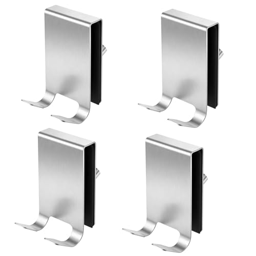 FAAING 4 Stück Türhaken Edelstahl Ohne Bohren, Glaswand Handtuchhaken Handtuchhalter Duschwand Duschhaken zum Einhängen Kleiderhaken Tür für Badezimmer Duschbad Glaswand