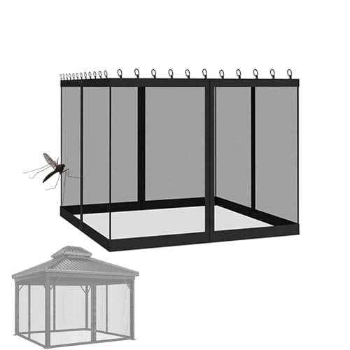 Moskitonetz für Pavillon 3x3 m, Gazebo Insektenschutz Fliegennetz Outdoor Moskitoschutz mit Reißverschluss, Ersatz Universalabwehr Sonnenschirm Mesh 4 Seitenteile mit Haken (Black, 300 x 300 cm)