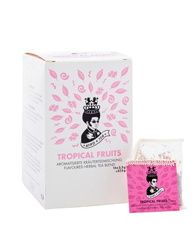 Afro Tea Tropical Fruits (Aromatisierte Kräuterteemischung aus tropischen Früchten), Premium Tee in 15 Musselin-Teebeutel, je 2,5g, handgenäht. Erlesene Pflanzen bester Qualität - koffeinfrei