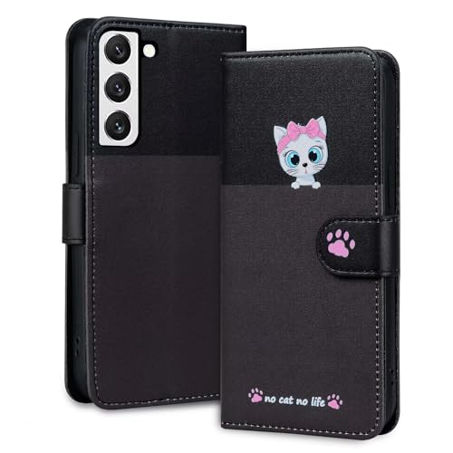 Rnrieyta Miagon für Samsung Galaxy S24 Plus Hülle,Cartoon Hund Katze Handyhülle Gespleißt Brieftasche Klapphülle mit Kartenfach Ständer PU Leder Flip Case Cover Magnetverschluss,Schwarz