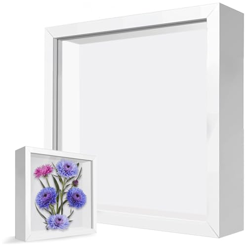 Bangbobi - 3D Bilderrahmen tief zum Befüllen, Objektrahmen mit Platz für DIY Kunstwerke, 20x20cm weißer Rahmen für Fotos, Collage, Brautstrauß, Wanddeko
