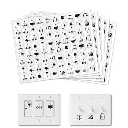 GOMAKERER 600 Stück Lichtschalter Aufkleber, 33 Designs Transparent Schalter ID Aufkleber Schalttafel Label Aufkleber Für Hause Küche Badezimmer Büroschule 15 x 15 mm