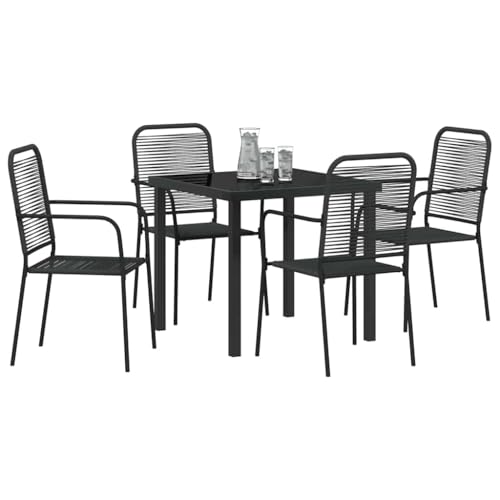 vidaXL Garten Essgruppe 3 pcs Schwarz Baumwollseil und Stahl, Garten und Terrasse, modernes Design, rechteckiges Essset, UV-beständig, für draußen, schnelltrocknend