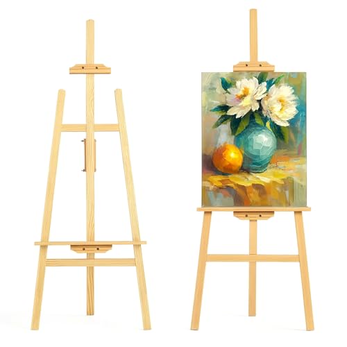 Artina Staffelei Holz Groß Kiefernholz 150cm Holzstaffelei Feldstaffelei höhenverstellbar große, kleine Keilrahmen – Staffelei für Kinder & Erwachsene, Hochzeit, Leinwände, Easel