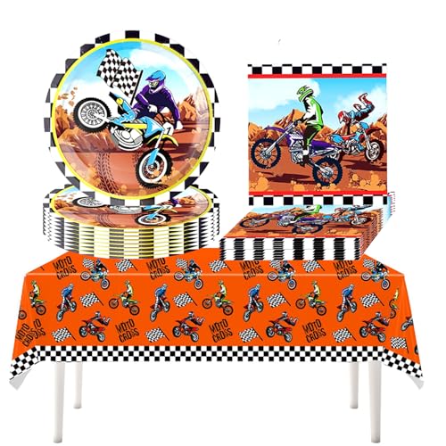 Partygeschirr, Geburtstag Partyzubehörsets, Partygeschirr Kindergeburtstag, für Kindergeburtstag Party Dekoration Geburtstagsdeko 10 Gäste (Motorrad-2)
