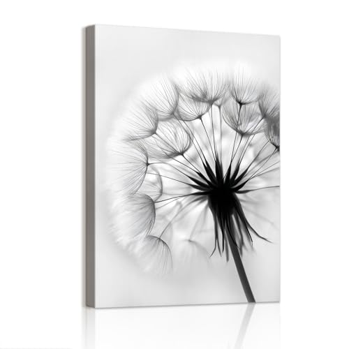 WENGTIAO Löwenzahn Leinwand Bilder Kunstdrucke Gerahmtes Bild Schwarz Weiß Minimalistisch Floral Gemälde auf Leinwand Moderne Wandbilder für Wohnzimmer Schlafzimmer Wanddeko 30x40cm