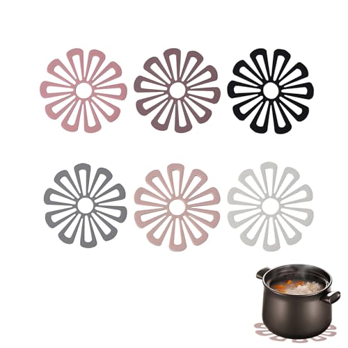 Topflappen & Untersetzer Silikon 6er-Set, Coaster Hitzebeständig, Multi Blume Topfuntersetzer, Ausgehöhltes Design, rutschfest und Dekorative TopfUntersetzer, Funtersetzer Spülmaschinenfest