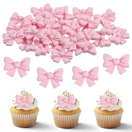 30Stück Schleifen Torten Deko Nicht Essbare Tortendeko Schleifen Cupcake Dekorationen Mit Rosa Schleife Topper Deko Kuchenaufsatz Zubehör Nicht Esspapier Kuchen Kuchendekor für Themenpartys Verlobunge